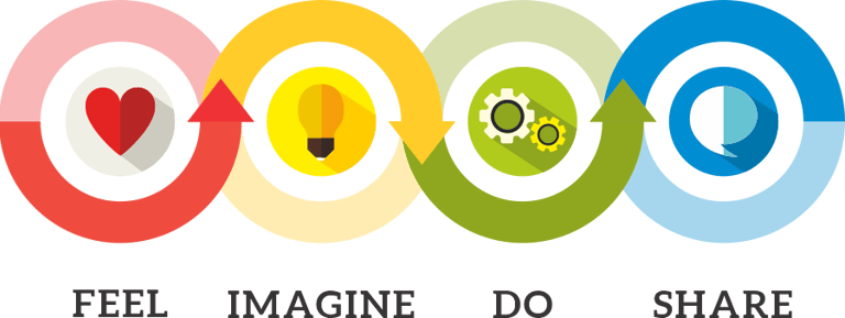 Using this framework, children are encouraged to 'FEEL' (observe and identify any situation that bothers them), 'IMAGINE' (brainstorm a way to make it better), 'DO' (work in teams to implement their solution) and finally, 'SHARE' (their solution of change with the world) to inspire others to say, 'I CAN'!