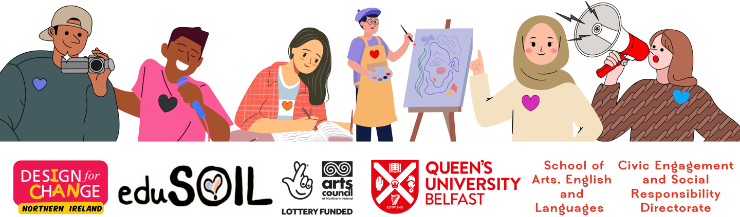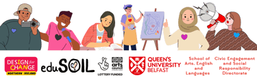 Art For Change 2025 is designed and delivered by Design For Change Northern Ireland, eduSOIL and funded by Arts Council Northern Ireland and supported by Queen's University Belfast, School of Arts, English and Languages and Civic Engagement and Social Responsibility Directorate.