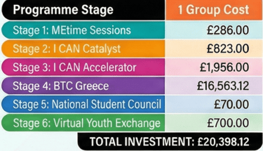 Price per participant: £73 (for event involving 10 groups where each group comprises 1 teacher, 5 youth, 1 employee volunteer)